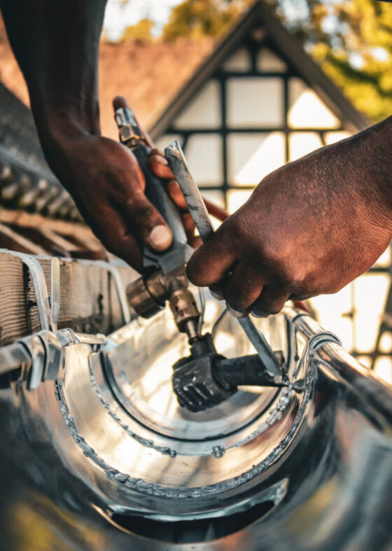 Nous travaillons tous types de matériaux : du zinc, au cuivre en passant par la tôle thermolaquée ou encore l’inox. Nos travaux de zinguerie sont réalisés sur mesure, dans le respect des traditions et selon un savoir-faire artisanal. Les matériaux sont travaillés sur place à l’aide de plieuses manuelles.